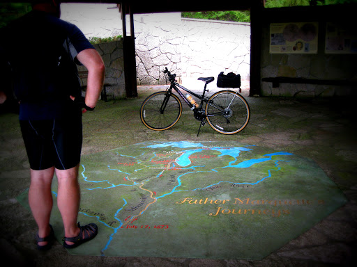 We rode our bikes to a park that overlooked the lake and the Mackinac Bridge. At the Marquette memorial, we recalled that he and Jolliet were the first Europeans to map the Mississippi River and explore the surrounding land. They left from St. Ignace, following the Fox River from Green Bay and eventually came to the Mississippi.