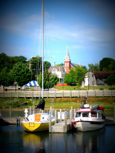 Our first morning in St. Ignace, we lingered over a pancake, bacon and egg breakfast prepared on our galley stove. After breakfast, we pulled the bikes off the top of the boat to explore the town. We were looking for a historic site, where Father Jacques Marquette, a Jesuit priest, founded a mission in the early 1600s. It was strange, I knew his name from the state park over in Illinois, but I felt like I knew him from my childhood. When I read one of the plaques at his memorial site, I remembered doing a report on Jolliet and Marquette, the explorers. Now as an adult I was putting the historical and spiritual pieces together.