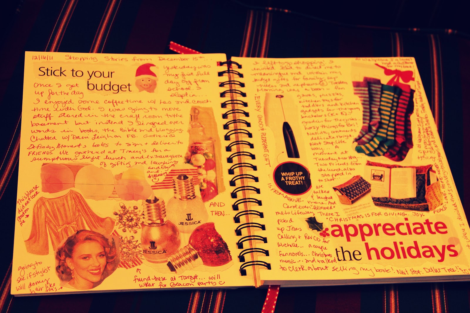 Last year, I came across the idea to cut out magazine pictures to paste into my journal as a backdrop for my musings. As the holiday season arrived, so did many catalogs and I bought some of my favorite magazines at the store.