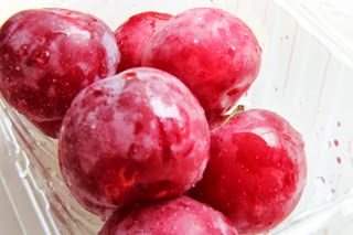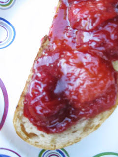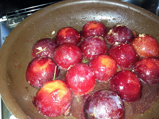 Tonight we ate grilled chicken and zucchini. We grilled slices of the boule and topped them with the sauteed plums, which I sweetened up with more brown sugar.