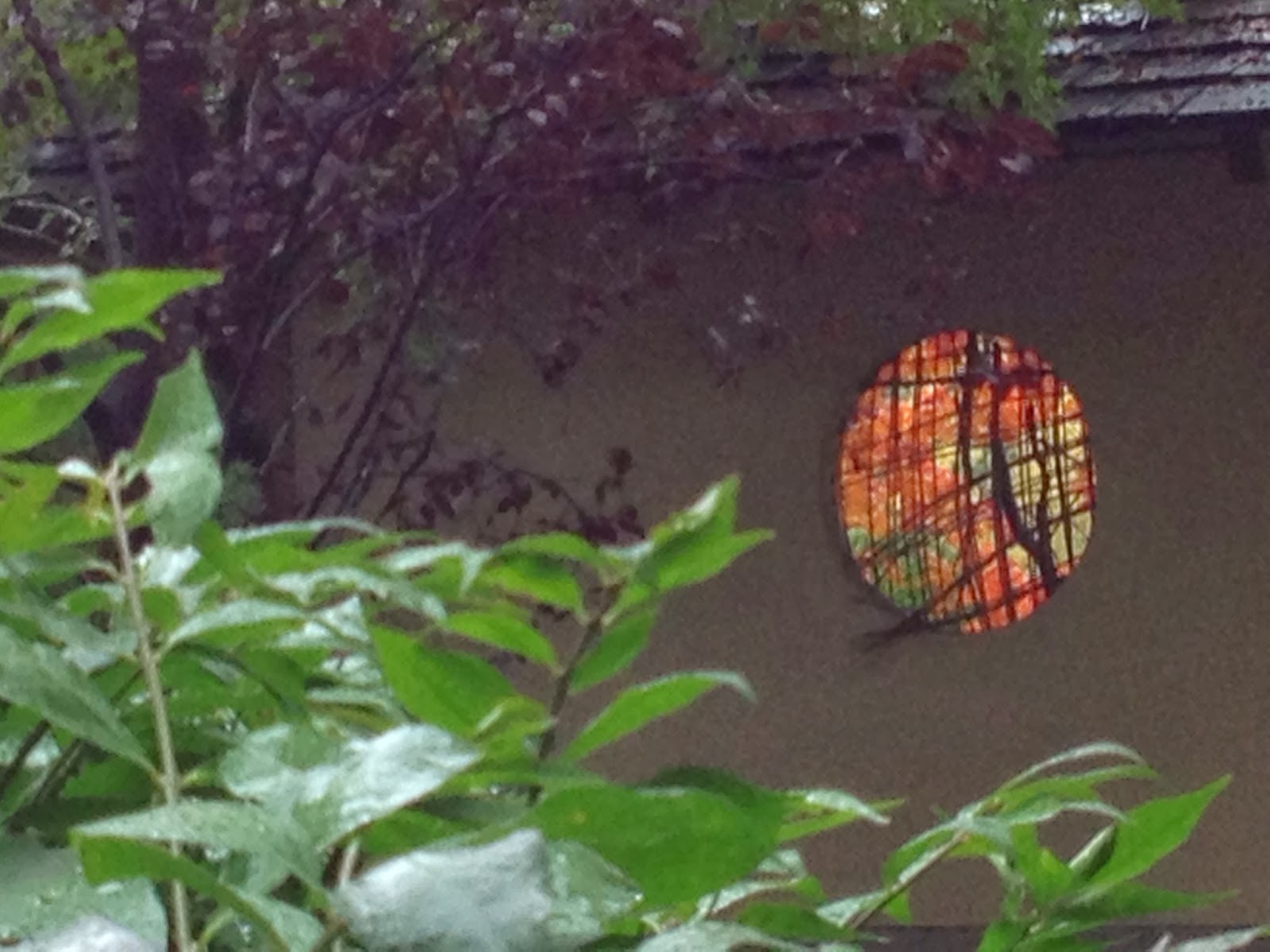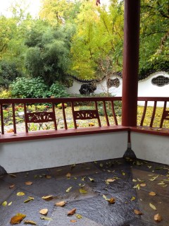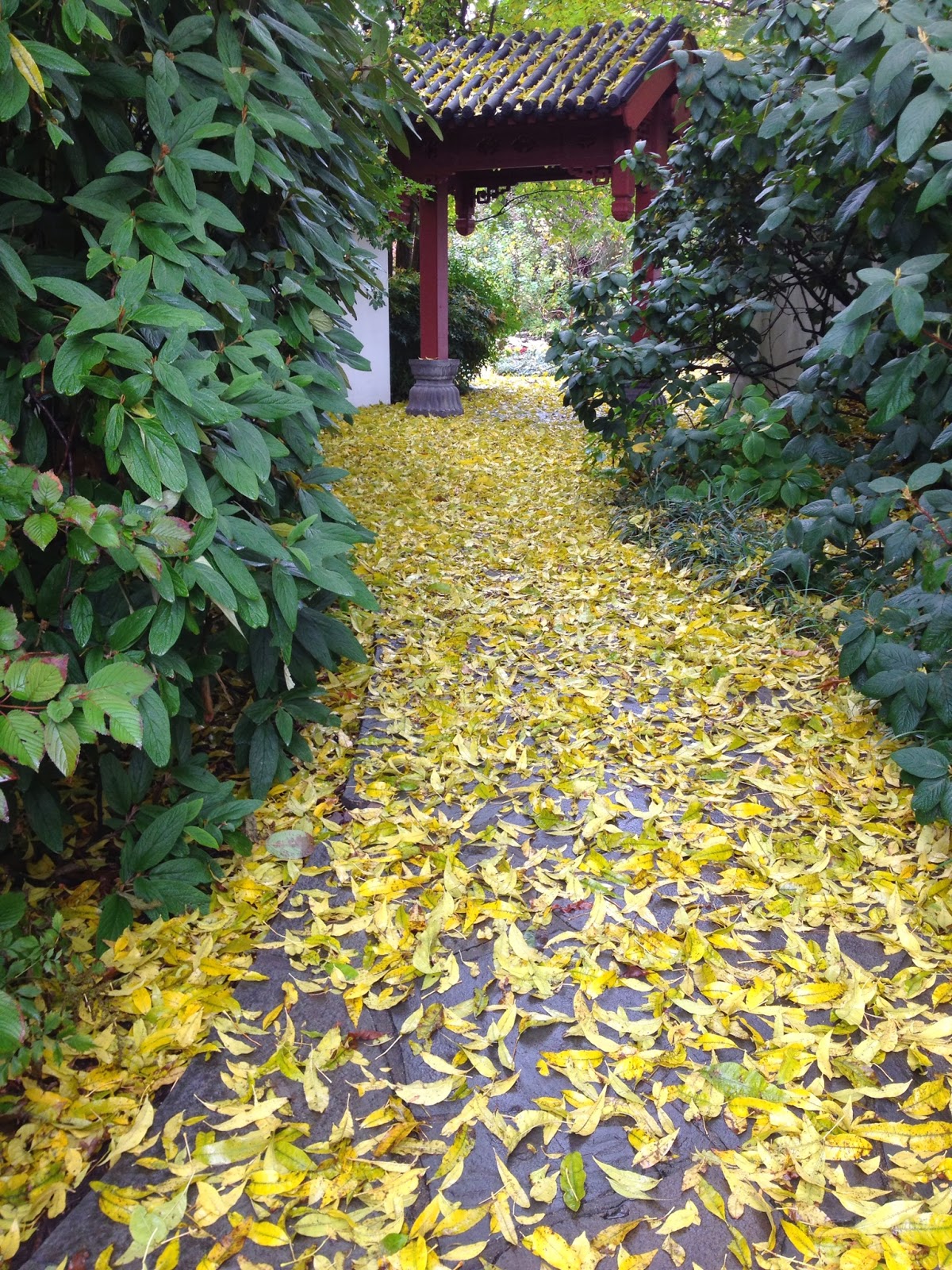 Today was an unseasonably warm, yet rainy day. I put on my walking shoes, carried the umbrella and strolled with my camera phone to my favorite haunts. The Victorian garden, the English woods, the Japanese pond and surrounding foliage. And just before I left, a stop at the small Chinese secret garden to sit in the gazebo.