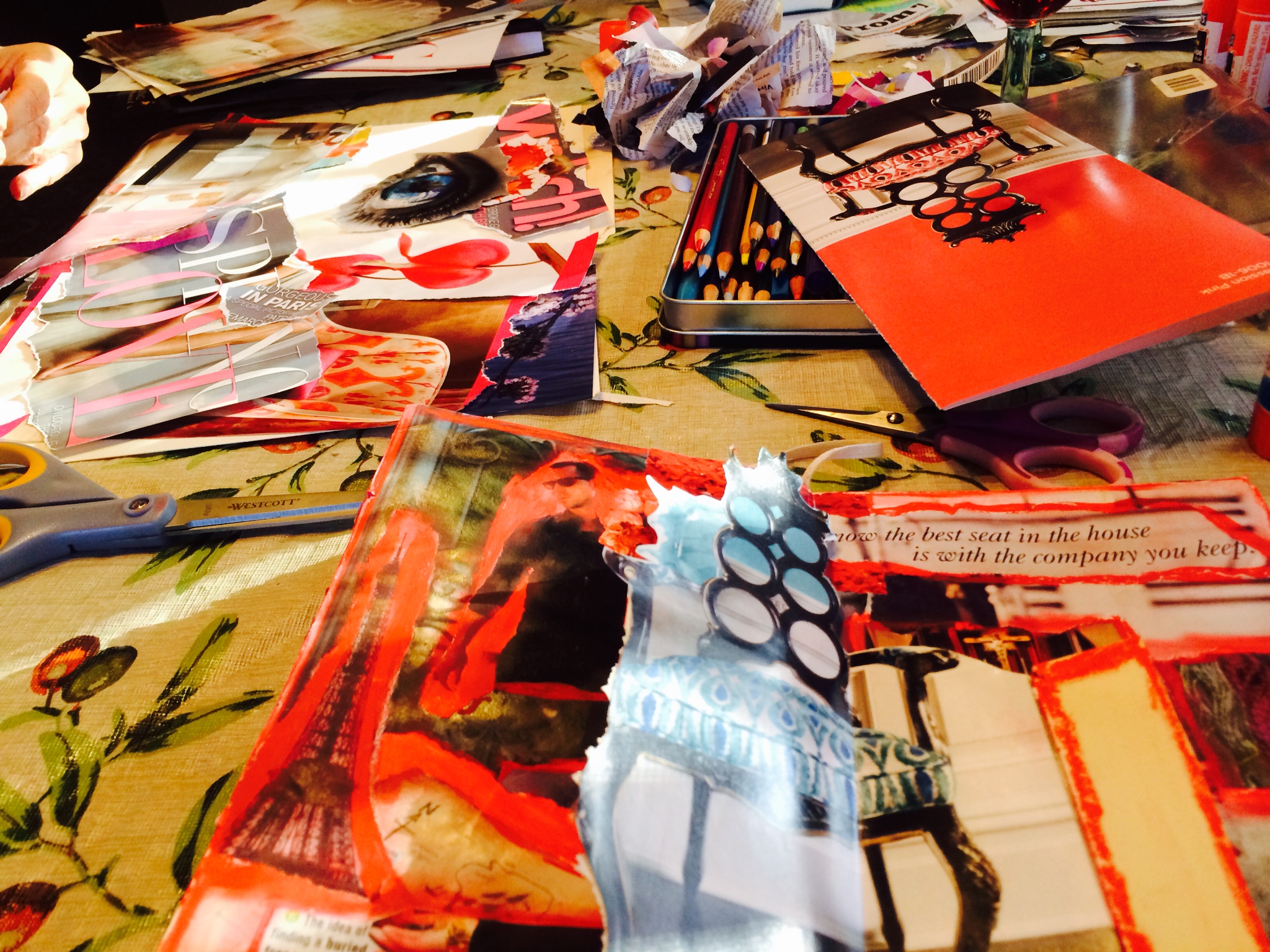 You should have seen us scouring the pages of outdated magazines for inspiring and intriguing images and words. The table was spread with love, delight and magazine pages.