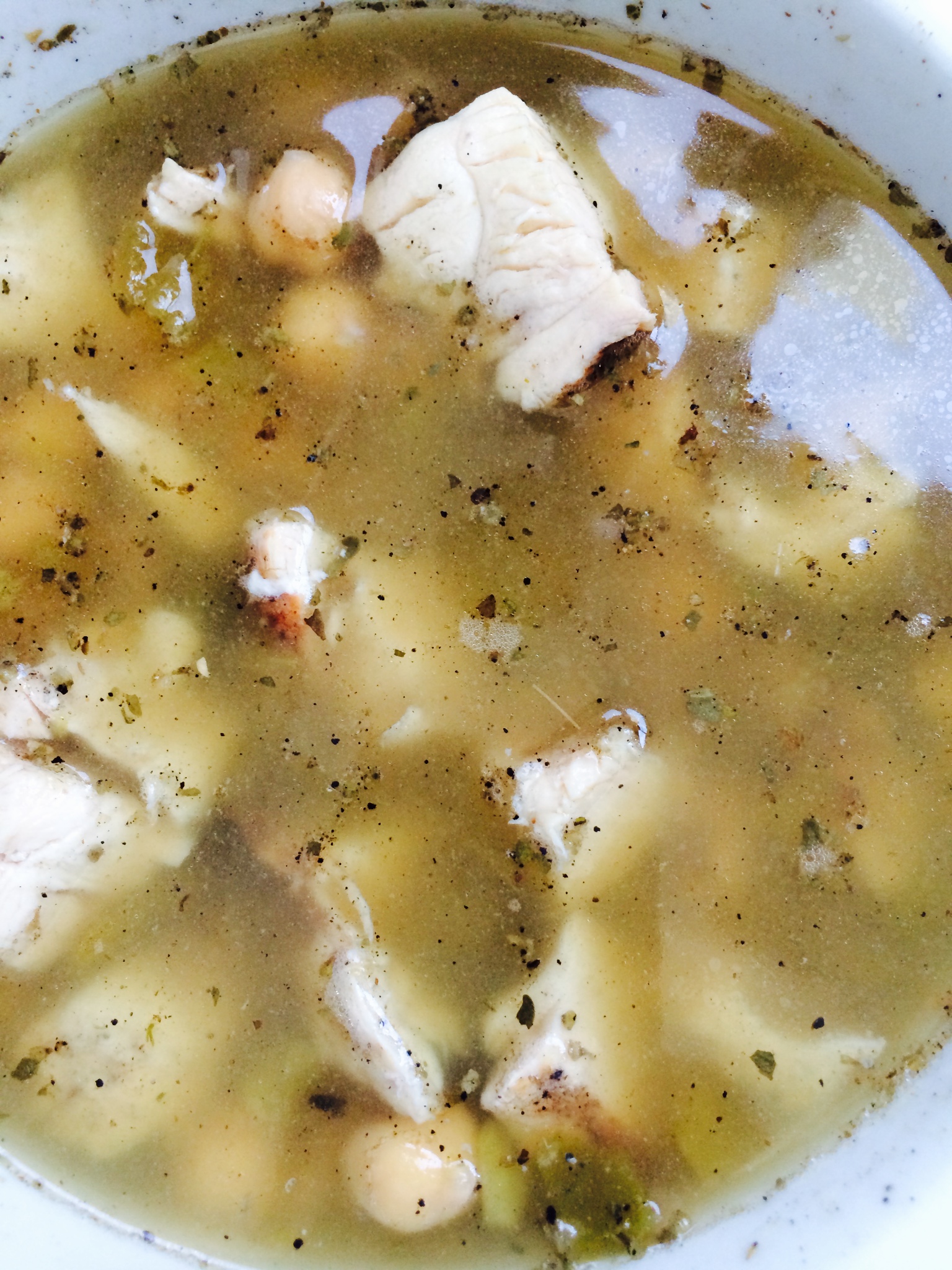 White Chili for dinner made in a travel crockpot which cooks while we putter along in the boat