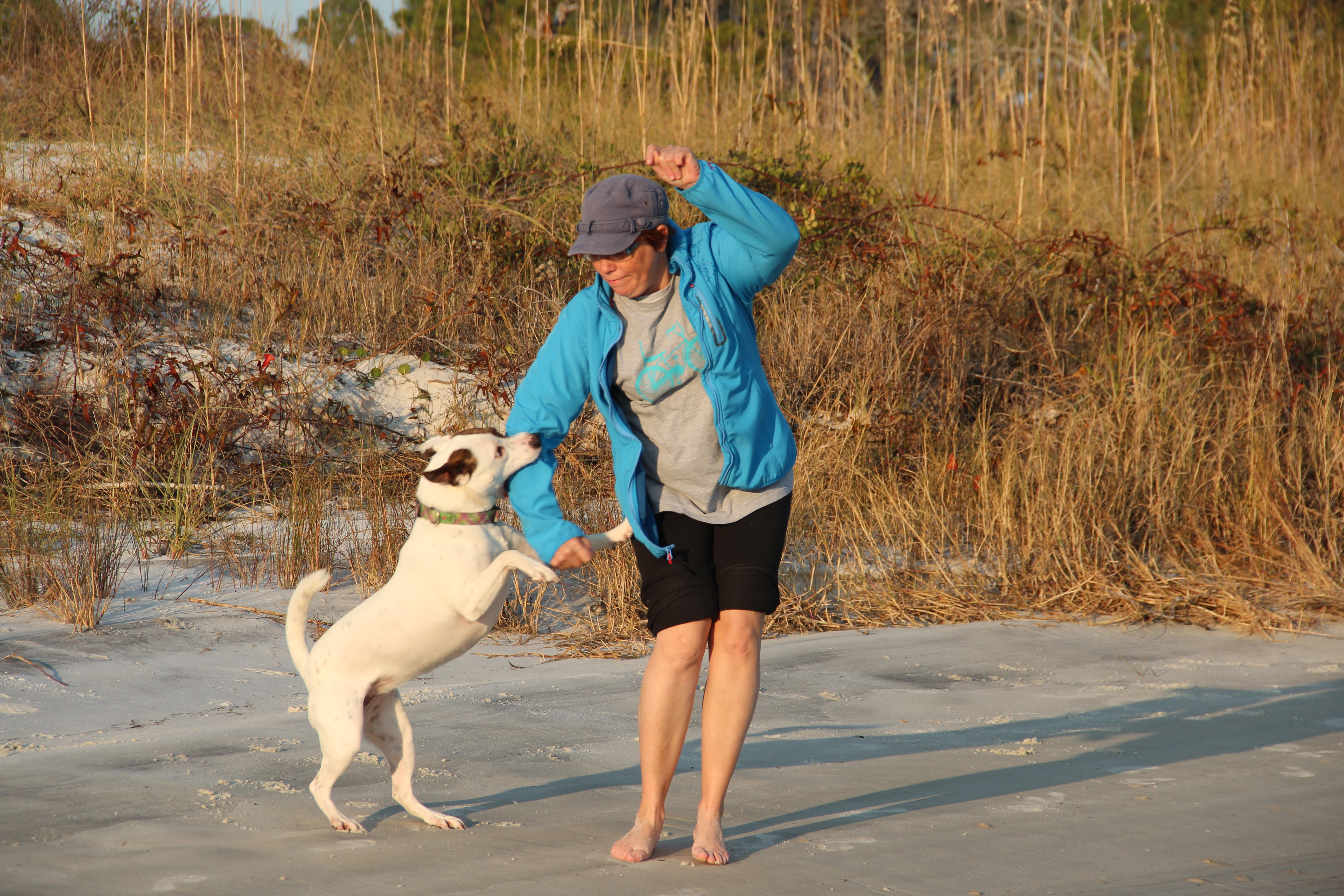 Marie had planned on feeding us dinner and breakfast. Bob offered to take us to town to pick up any supplies and to give us a tour of the Pensacola area. We left Kokomo with Marie and their poodle, Angel. Kokomo got to play in their yard to her heart’s content and was treated to Marie’s southern hospitality. (Marie gave her treats, got her a little bed out and fed her, too.)