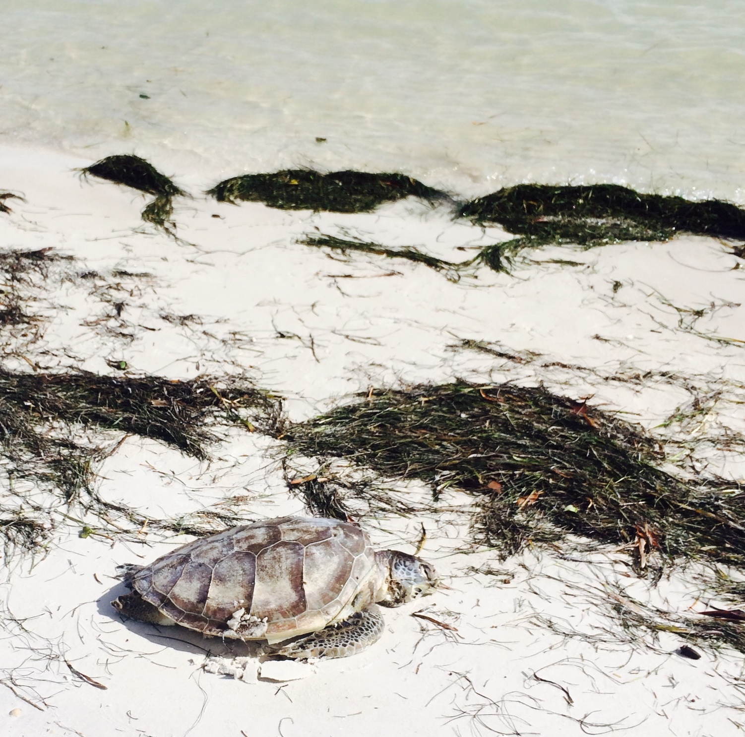 Continuing north, I snapped photos and marvelled at this lovely spot to commune with God and nature. There were lots of friendly people along the beach wishing me well, reporting that a dead sea turtle was ahead and proclaiming what a fabulous day we were experiencing. The seas were calm, the breeze light and the sun dipped in and out of the clouds.