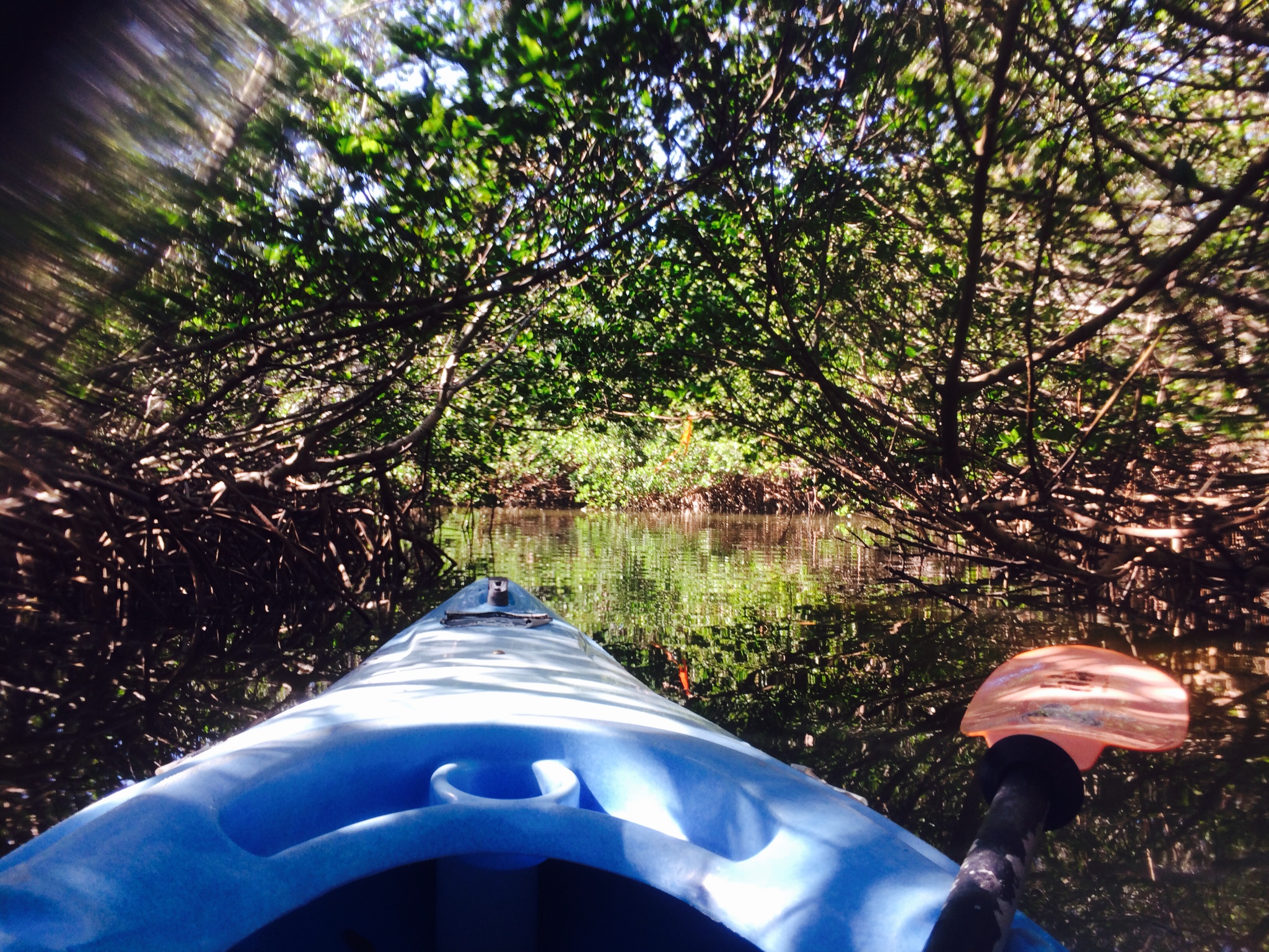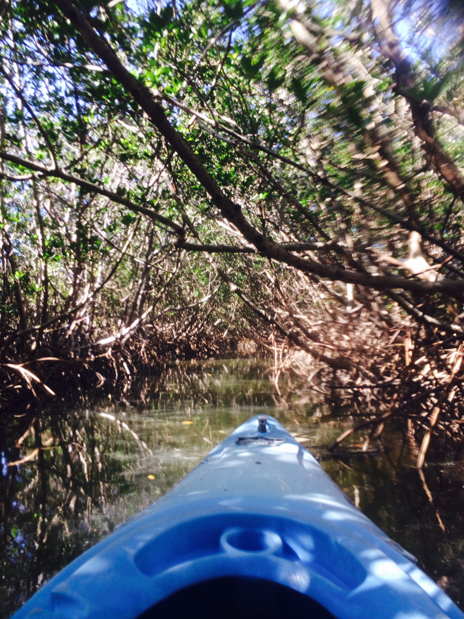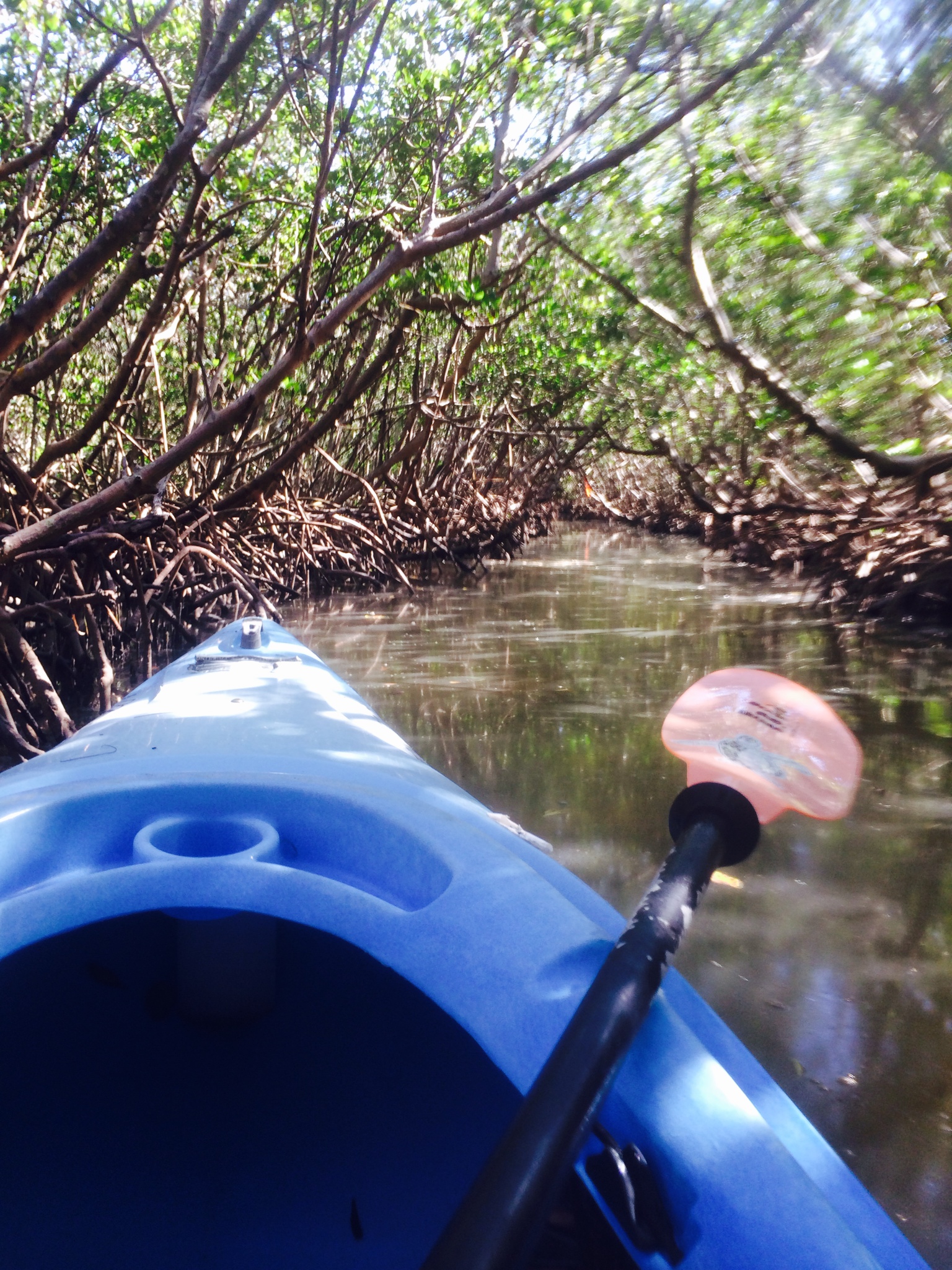 I had no idea what I would encounter on the trail, but I figured since I had rowed a kayak before, I would be fine. I got settled into the kayak, reacquainted myself with “steering” to turn left or right and back up. All skills that I found would be very important as I paddled through the mangrove “park.”