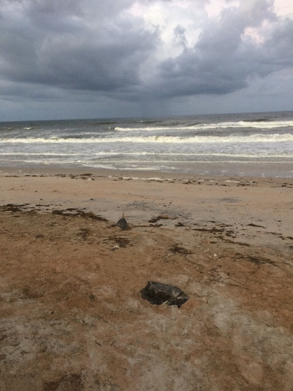 After we got the boat situated in its slip, and Les got back with the truck and trailer, I walked over to the beach to investigate. The marina folks kindly let us store the trailer on their property. (The beach is just across the street.) We are fairly remote here between St. Augustine and Palm Coast, but enough amenities, like a Publix grocery store five miles south.