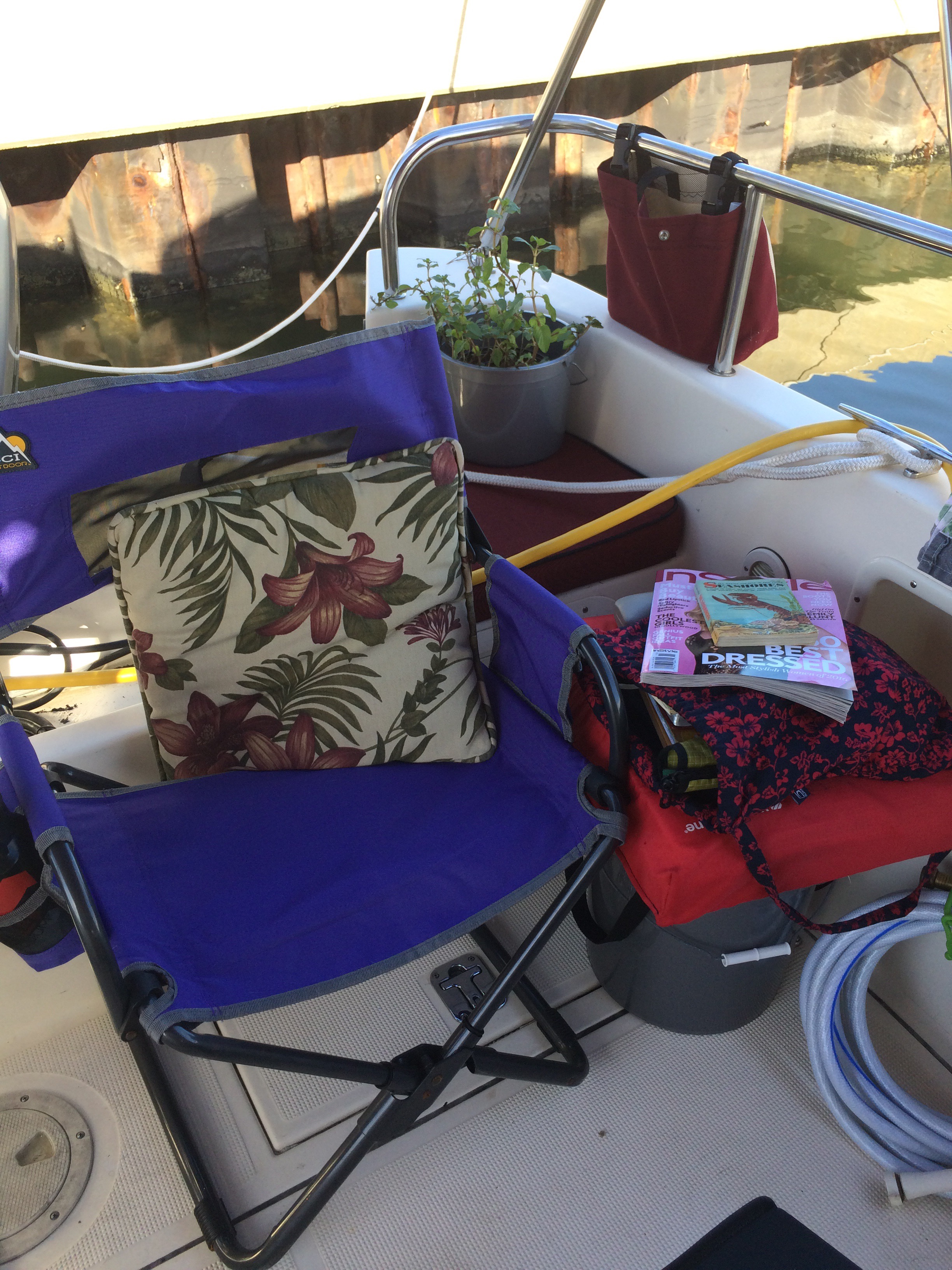 Here’s my thinking spot on the back of our boat. I’ll be contemplating Nature, and keeping you updated on my research expedition.
