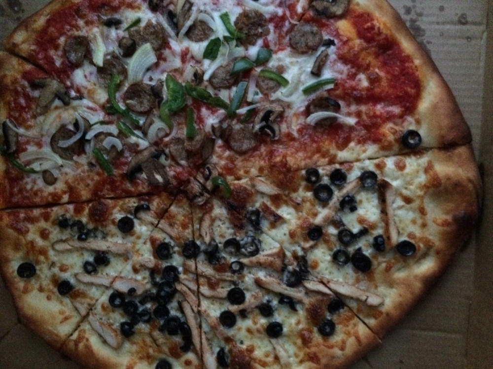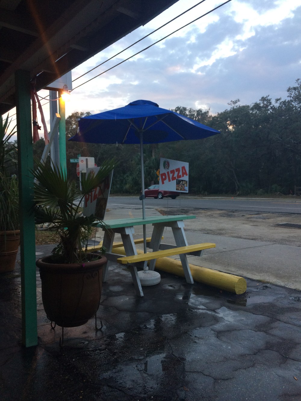 More than escape, I wanted neither of us to have work obligations. But we did. To ease some of our stress, I drove to the little pizza shop nearby to get our dinner. I was able to special order one pizza with two different halfs. I watched the sunset, while I waited for the pizza. And the rain actually cooled things off for the rest of the evening.