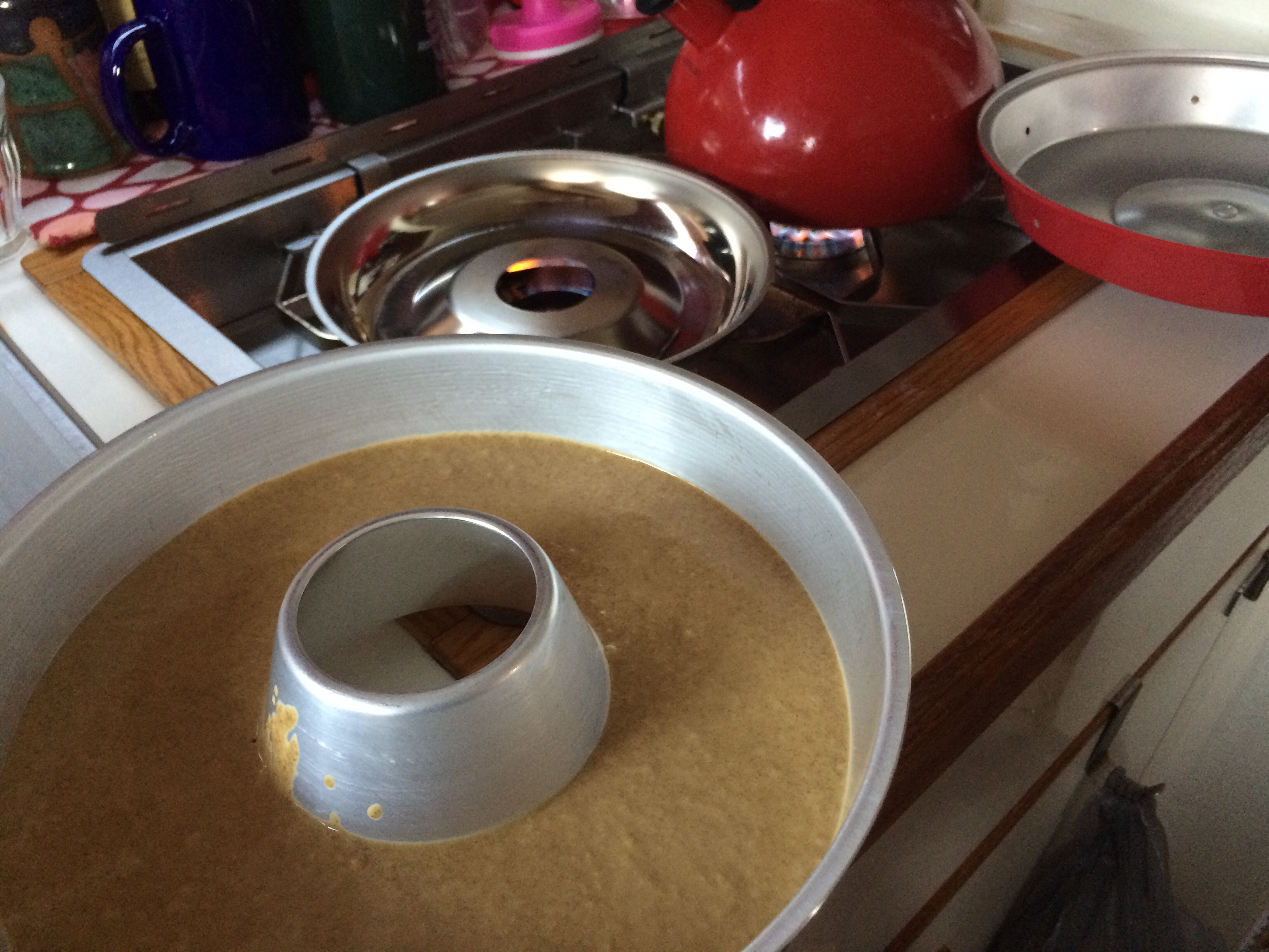 On Saturday morning, the cooler temperature inspired me to get out the Omnia stove top oven. We ordered it, after hearing about it from another boater. I baked a gingerbread snack cake for our breakfast.