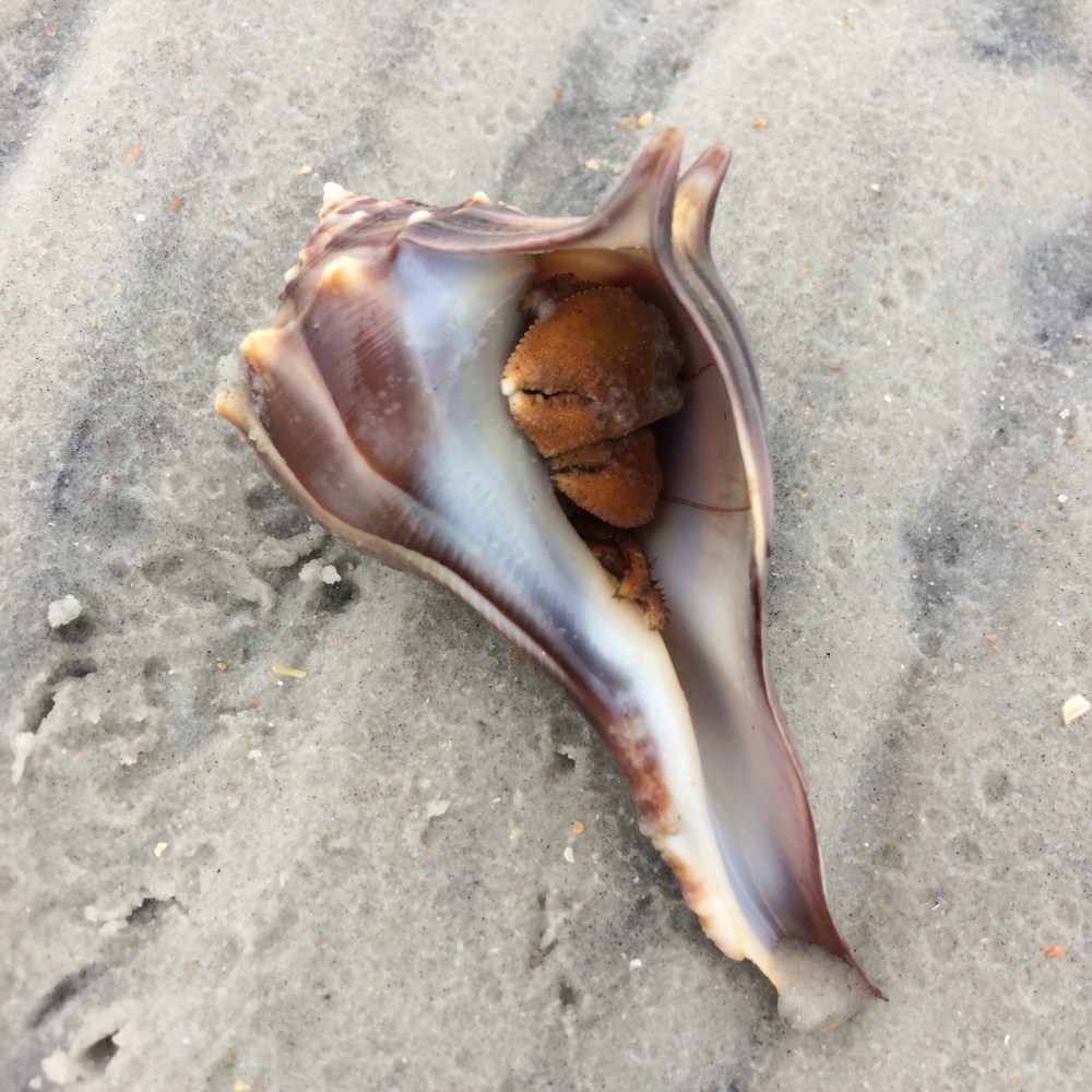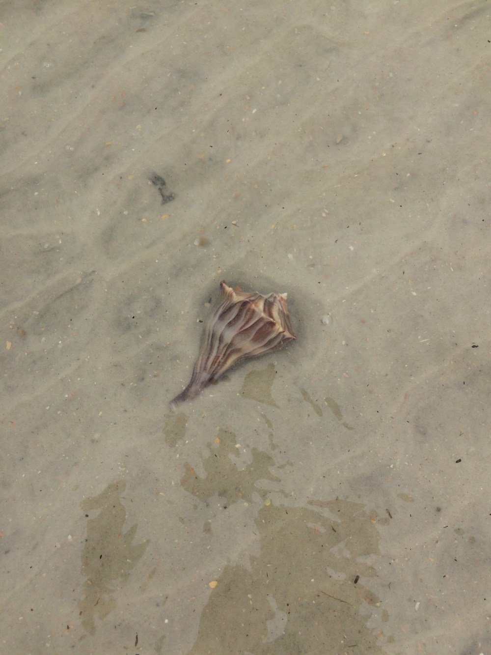 At first, I thought that I had picked up a beautiful shell for my collection. As I lifted it out of the water, I noticed movement. Something was living in the shell. I set the shell on the beach willing the crab to leave; I couldn’t bring myself to evacuate the crab from its home.