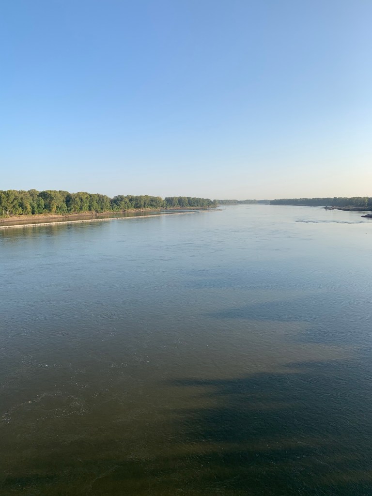I always enjoy observing nature, and the trail is a feast for the eyes winding past the river, fields and woods. I made my way to Machens, the Eastern terminus of the trail. I was surprised to meet a couple there. They were riding the whole trail over the next two weeks. It was fun to chat with them. Also was surprised that there is a bathroom at that stop. Good thing because after 15 plus miles I needed the facilities. After that break, I got back on the bike fueled up with an apple and visions of the Bike Stop Cafe in St. Charles for early lunch and coffee.