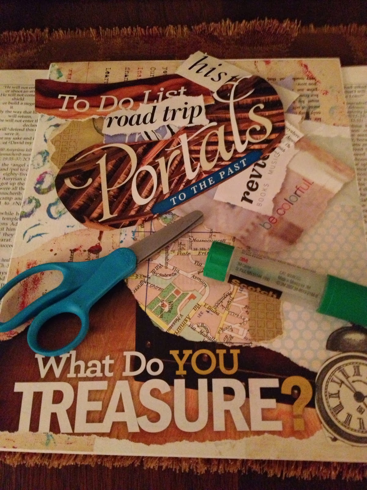 Question: Have you ever tried to use collage as a means of artistic creation and self-expression or to explore your “inner landscape”—translation: what God is showing you about your life circumstances, thoughts, dreams, goals, memories, conflicts, etc.? What were the results? How have you made collage-journaling a part of your spiritual practice?