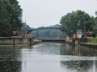 Our destination this morning was Seneca Falls. Each day Les tells me the itinerary and I half listen. So when I went to bed Sunday night, I thought I heard him say that we had three locks to go through on Monday. The next morning, he told me we had eight! What? I thought you said three! Oh, that’s on the Seneca-Cayuga canal, we have five to go through on the Erie Canal first.