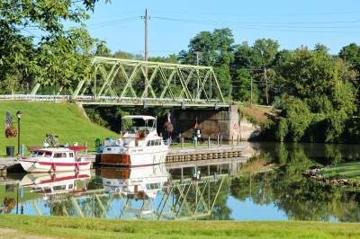 We took a shorter jaunt (10 miles) to the town of Newark, where we found fresh, local produce at the Sav-a-Lot. The town, like many of the towns along the western section of the canal provided free shore power, a shower and this time free laundry facilities. After picking up groceries and ice, we sat at the dock reading and catching up on our laundry.