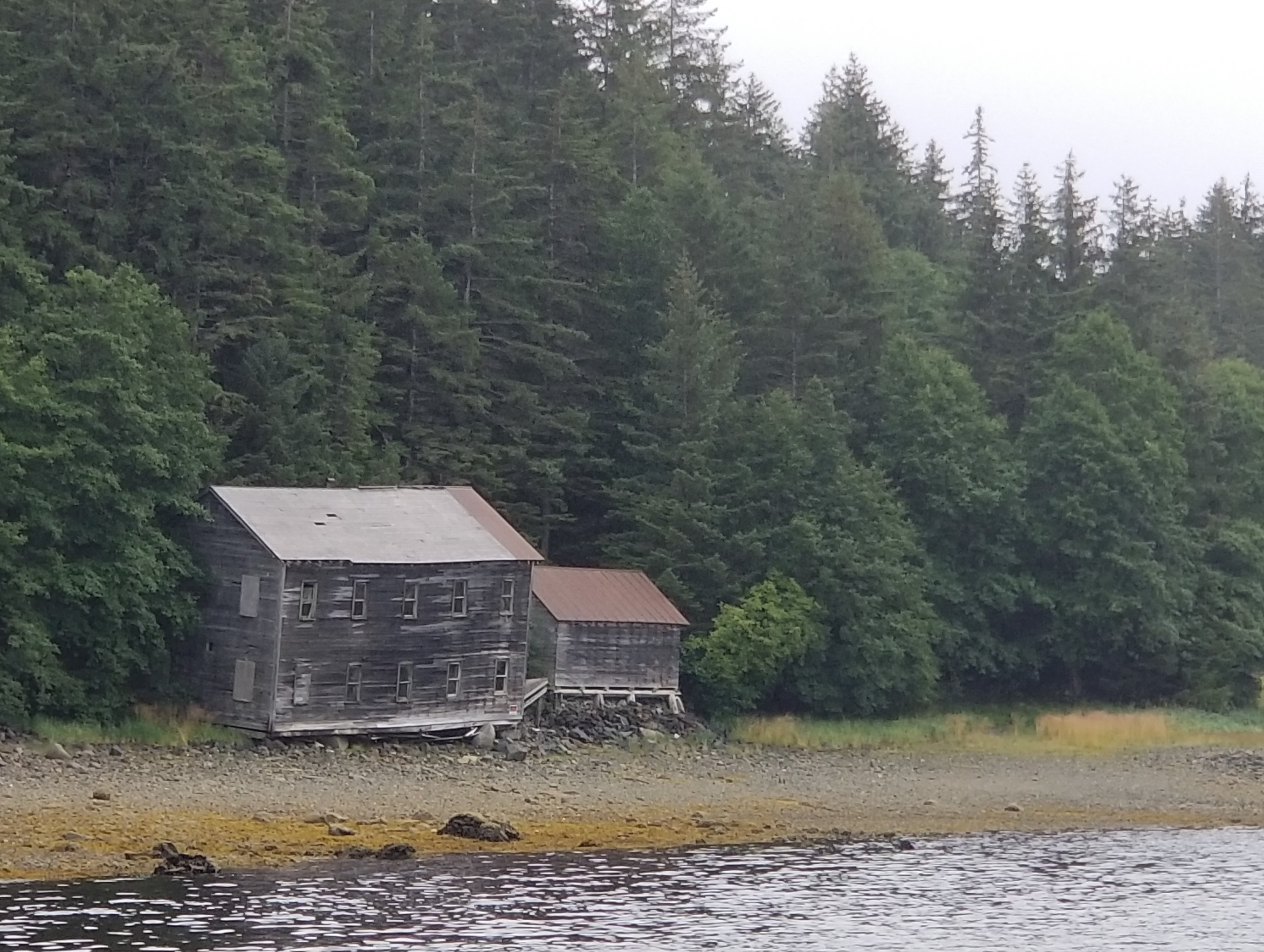 We crossed Sumner Strait and went to Point Baker. Point Baker is a small community (35 or so) in a well-protected cove on the northeast side of Prince of Wales Island. There was room on the public dock, but everything was shuttered. In better times there has been a restaurant, store, and bar there. Rather than spend the night, we decided to put in a few more miles to shorten the day tomorrow. We stopped in Salmon Bay, an inlet just south of Sumner Strait in Clarence Strait. It’s fairly narrow and also shallow.