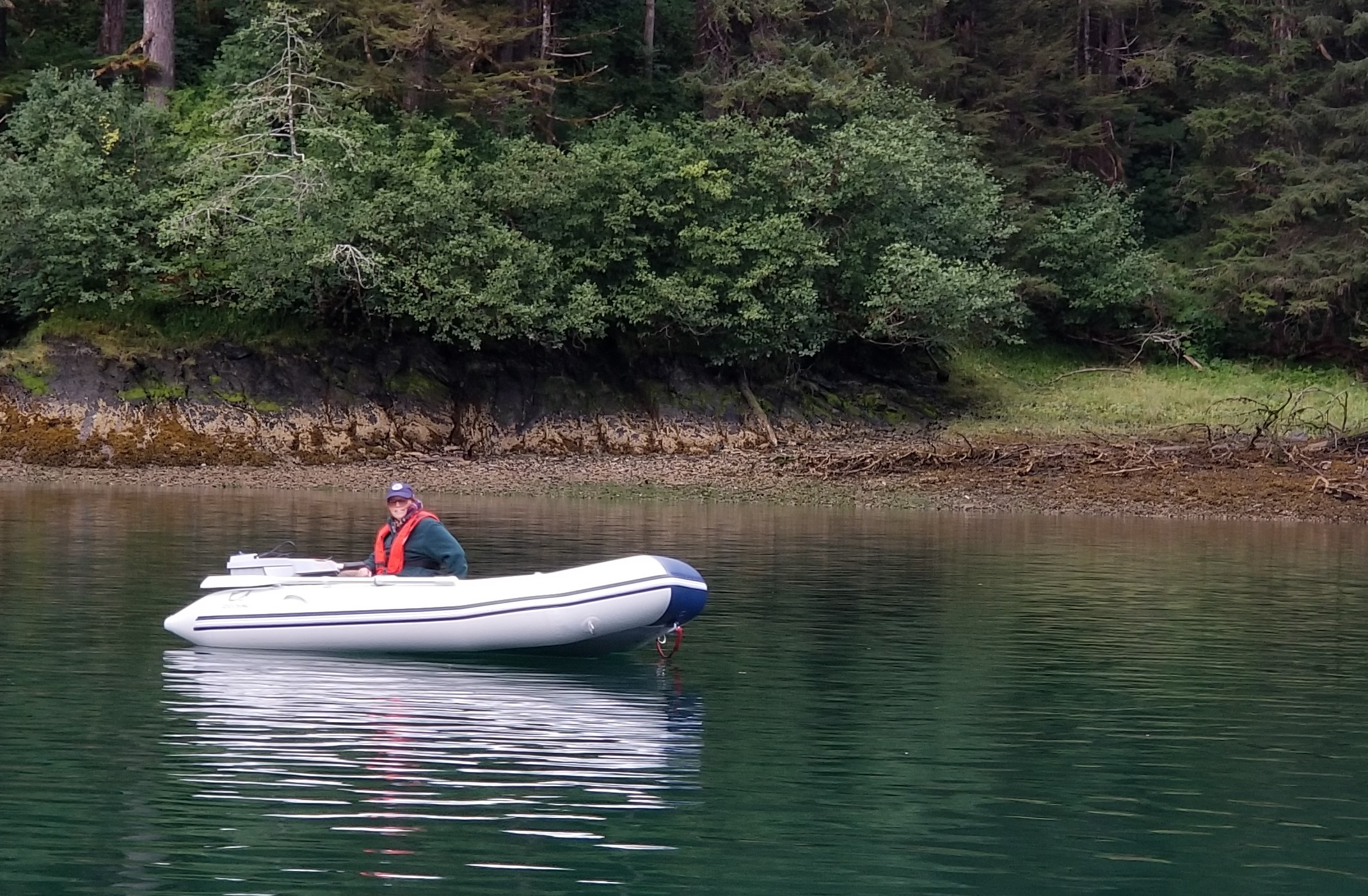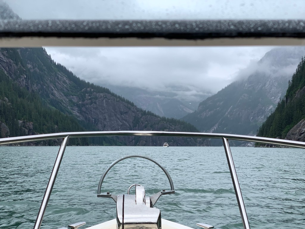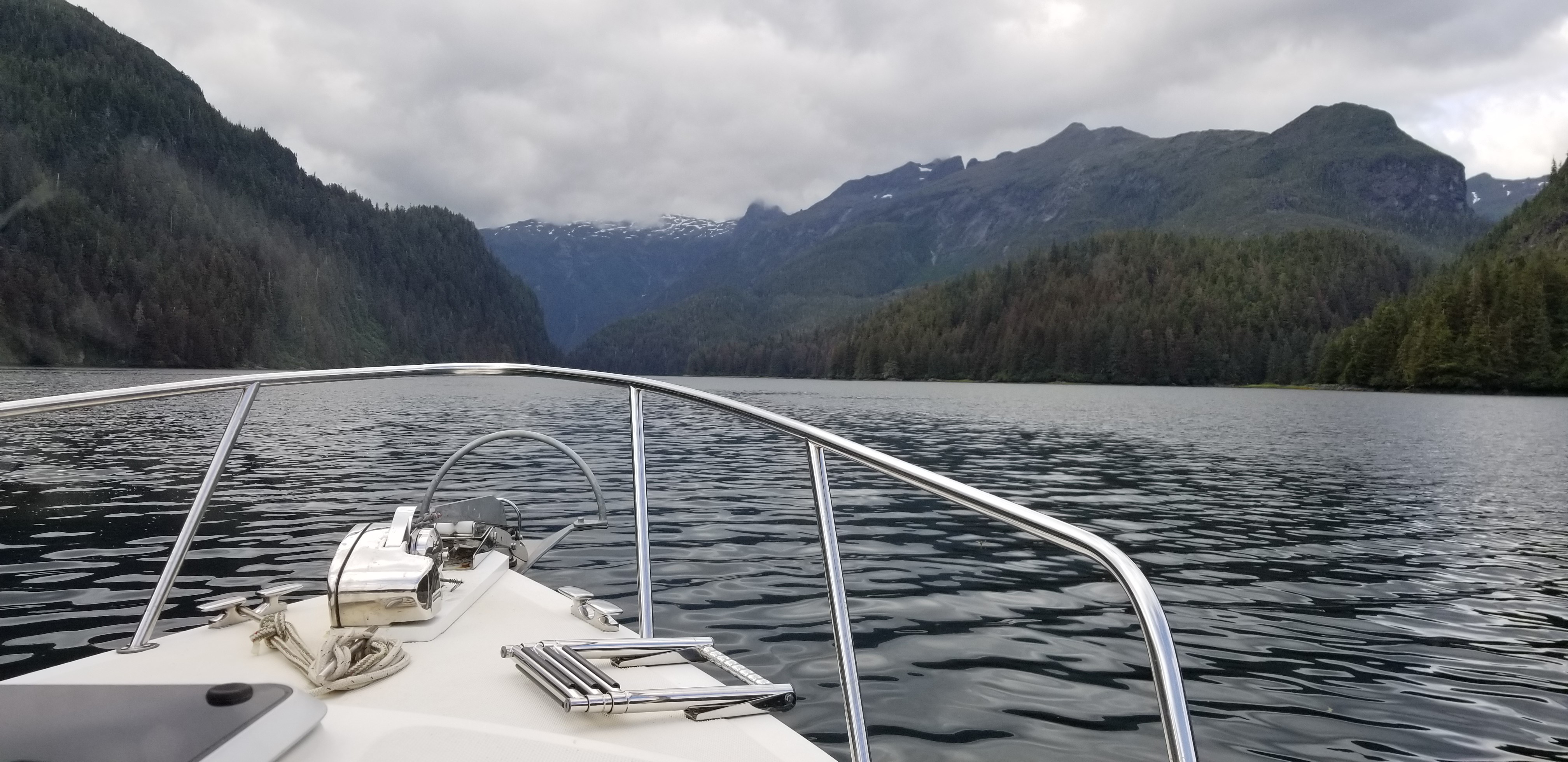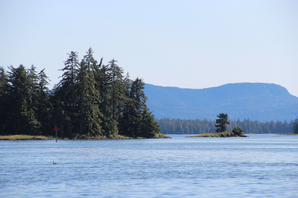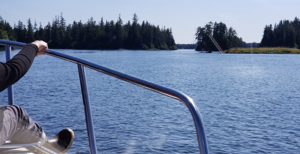 As we left Thorne Bay the winds picked up and opposed the tide making for a rollicking ride. I was feeling the sway in my stomach, and tried to ease it, but even lying down didn’t help. Finally, I offered to drive the boat, which usually helps. It gives me something else to focus on. I jokingly told Les that I handled the helm during the “most treacherous” part of the trip. He said he would call it uncomfortable, not treacherous. I conceded. My contribution to the navigation of this trip pales in comparison with his steady hand at the helm. I gained a greater appreciation for the amount of energy and concentration it takes to pass through the waters on “uncomfortable” days.