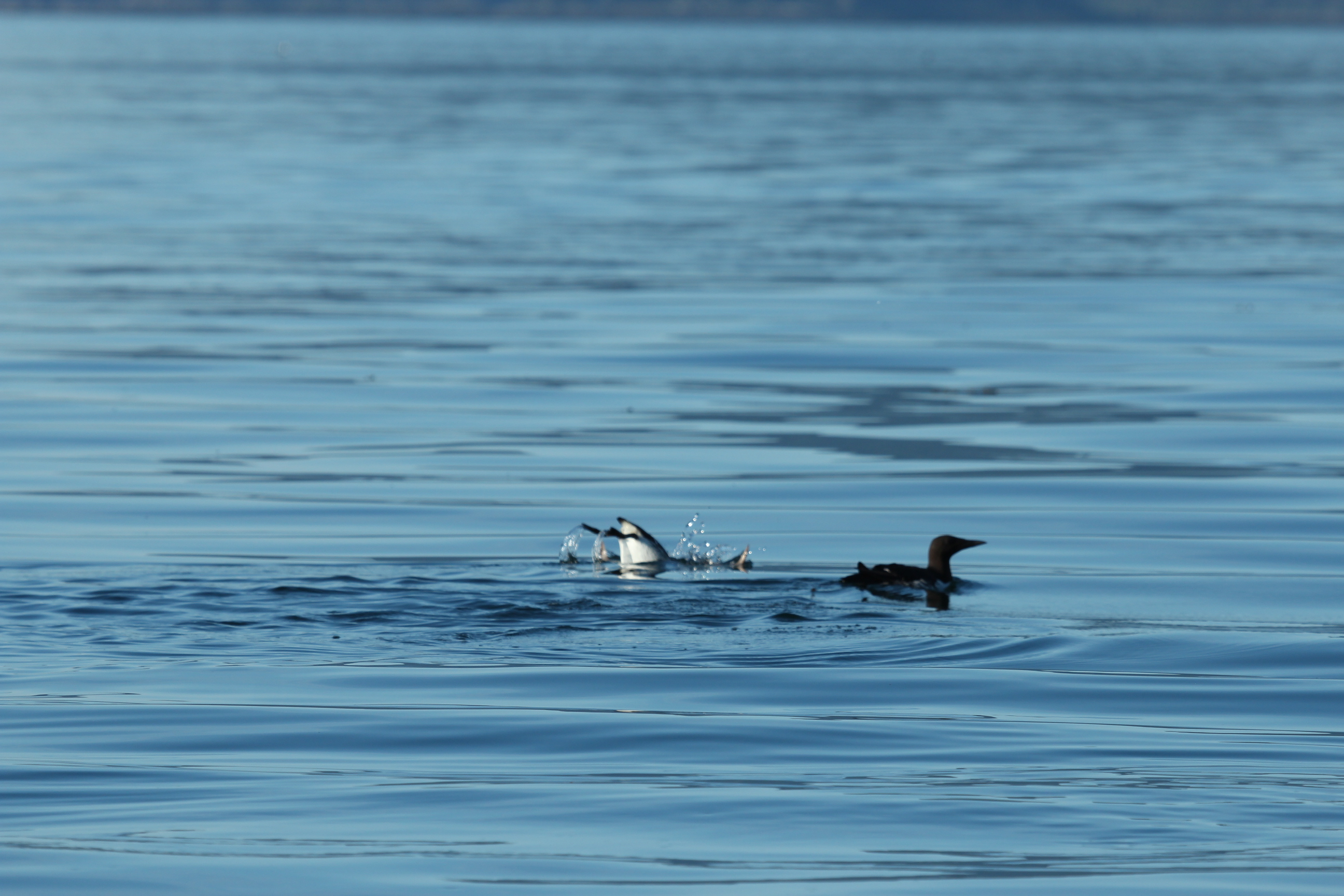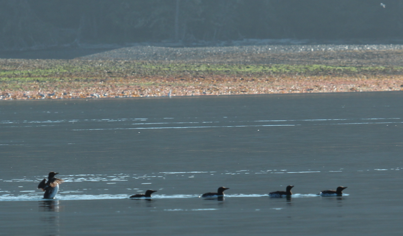 We headed east out of Salmon Bay toward Snow Passage at 7:00am. It was another clear, beautiful day with light winds. We saw some whales from a couple miles away near the north end of Snow Passage, but they were gone by the time we got there. Even though we arrived at close to low slack, there were some pretty strong currents running through this narrow area. During the last section of the passage, several Dall’s Porpoises popped up around the boat and flitted back and forth in front of us.