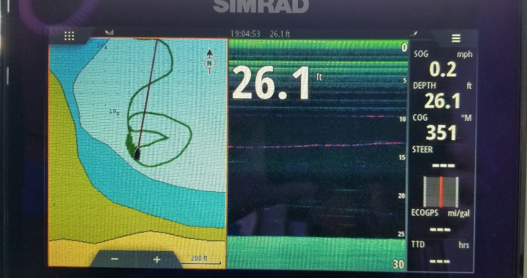 We arrived at Devil’s Elbow at 2:30pm and perceived no current through that area. Having now been through that section once, the tricky aspect is that you can’t see (at high slack) the two near-ninety degree turns that are required within about 100 yards of each other. The water shallows dramatically outside the channel. Today’s electronic charting makes the process far easier, especially since one of the channel marker (Green 13) was missing. I spent too much time looking for the missing green marker and slightly overshot both turns. At high slack I had a little more room for error and no pesky current trying to push me into a rock or mudbank.